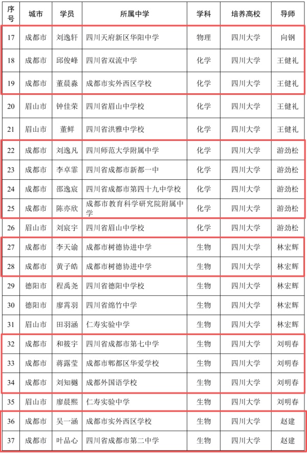 近日,2025年“中学生英才计划”(四川省)工作,经网上审查、学科潜质测试和导师面试选拔,入选学生名单已出炉,成都市共有54人入选。