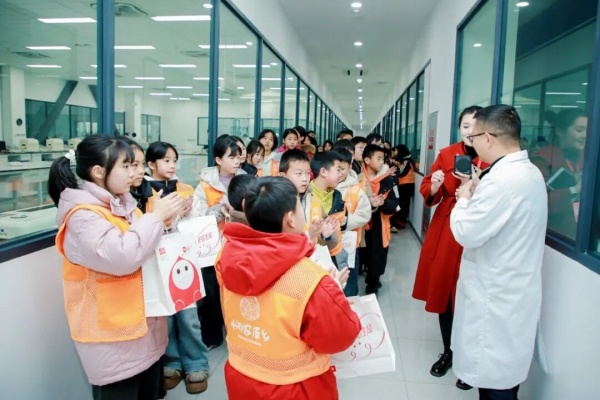57名万福社区亲子成员走进成都市血液中心,通过科普讲堂学习血液知识,在科普馆与采供血一线实地了解无偿献血的严谨流程,并借助教具动手模拟血液循环、完成研学打卡。